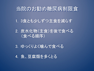 今回の糖尿病教室では話題の食事療法「糖質制限食」について坂本惠理医師より、分かりやすくお話しました。
